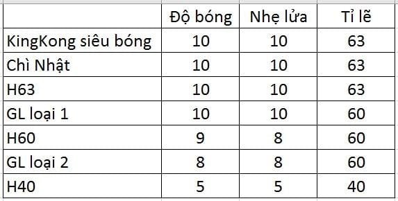 Độ bóng ít hơn so với GL loại 1 (8/10)